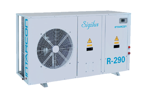 De Sigilus chiller van Intarcon is het assortiment koelmachines met een stille luchtgecondenseerde constructie voor commerciële koeltoepassingen, met een lage propaanvulling als primair koelmiddel in de koelmachine, en water of glycol als secundair koelmiddel voor koudtransport.